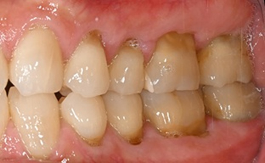 この患者様は、口腔内全体において重度の歯周病が生じており、歯磨き指導、クリーニング、Flap手術等を行ったが、歯周ポケットが深すぎるため
